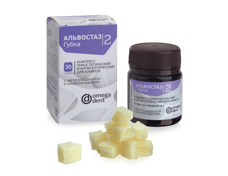 АЛЬВОСТАЗ губка №2 метронидозол и хлоргексидин (30 шт), Омега Дент