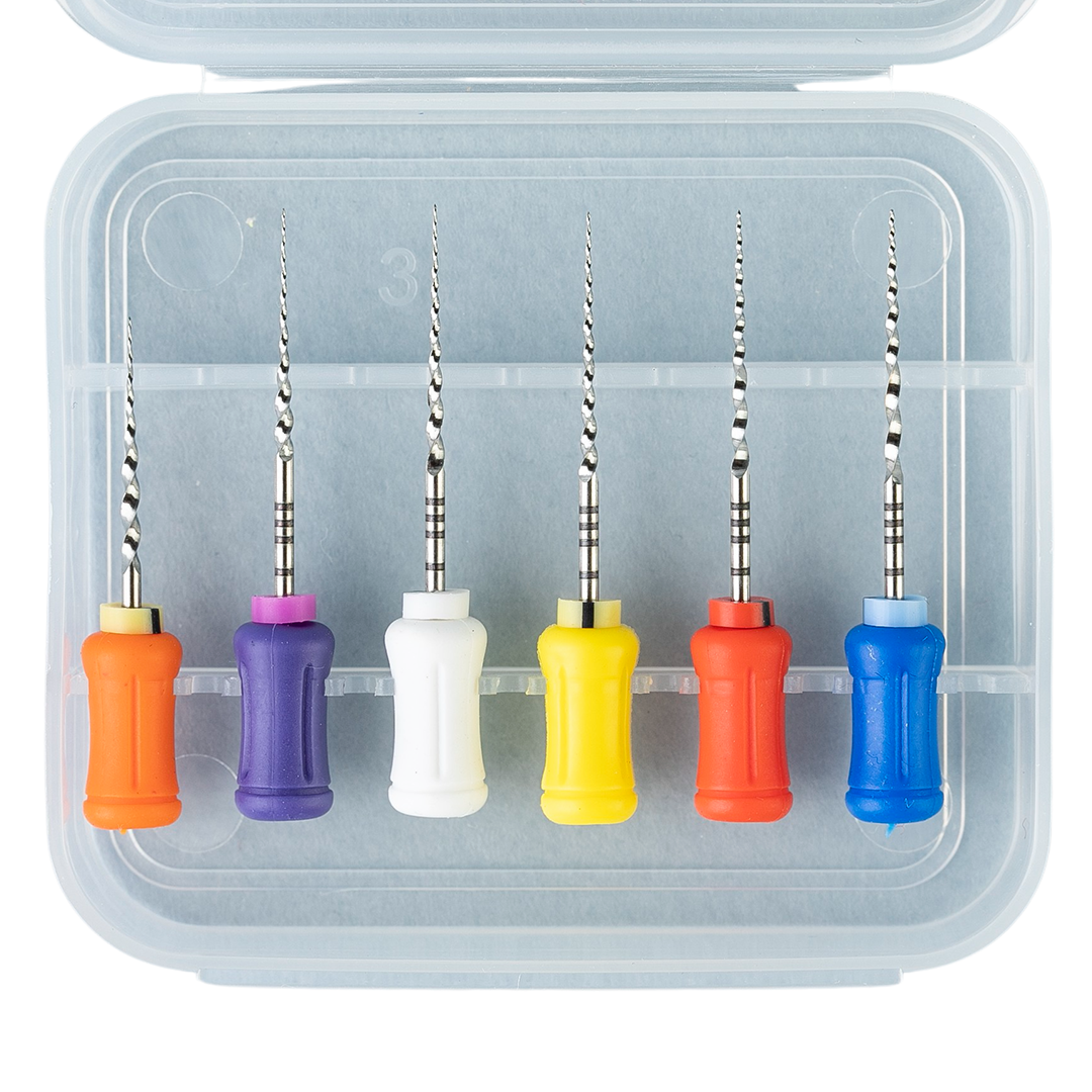 Super Files – аналоги оригинальных протейперов по протоколу, аналогичному Protaper: последовательное применение 6 файлов от корональной к апикальной трети обеспечивает плавное формирование конуса, эффективный вынос опилок и сохранение естественной кривизны канала. Логичная ступенчатая схема даёт предсказуемый результат эндодонтического лечения.