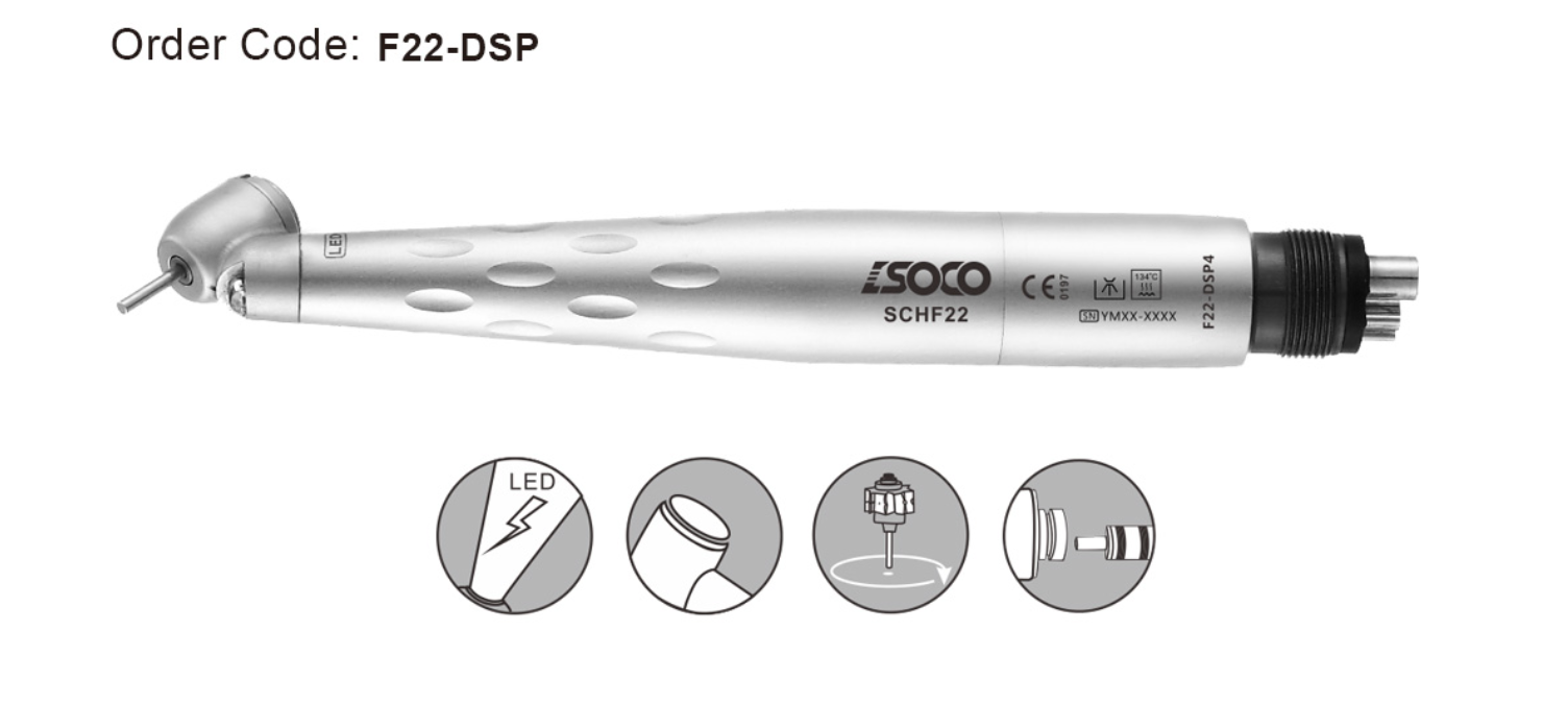 Угловой наконечник с внутренней подачей воды и генератором света Soco D23-F (1:1)