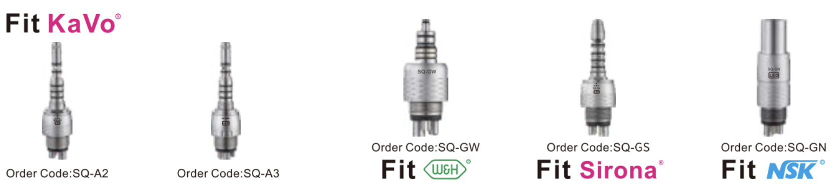 Турбинный наконечник с быстросъёмным соединением разных стандартов и фиброоптикой.